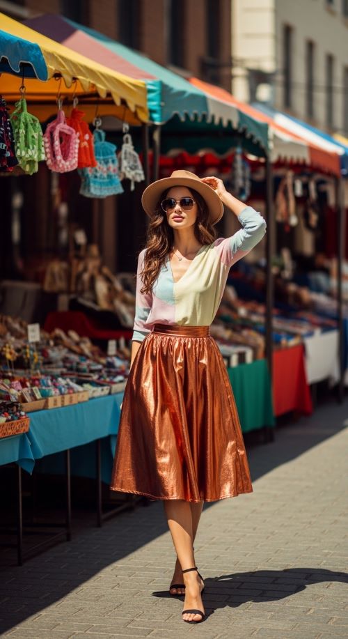 The right styling elevates metallic outfits from fun to fashion-forward. Stick to neutral tones or subtle metallic shades for shoes and bags to avoid clashing. Throw on a simple trench or leather jacket to tone down metallics during the day. Most importantly, wear metallics with confidence stand tall and enjoy the spotlight. Avoid over-accessorizing; let your metallic piece be the hero of the outfit.