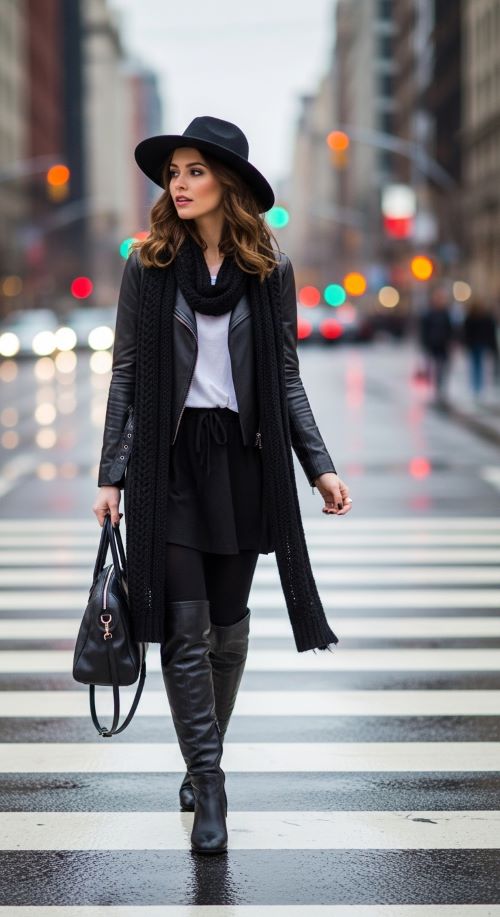 Leather pieces are bold and versatile. Mix jackets with skirts, pants, or dresses. Thrifted leather jackets or skirts are often affordable, and faux leather can mimic expensive textures. Pair with sneakers or boots for a casual street look. Leather adds toughness, edge, and visual contrast to softer fabrics. Even minimal leather touches—like a belt or bag—can make outfits feel street-ready.