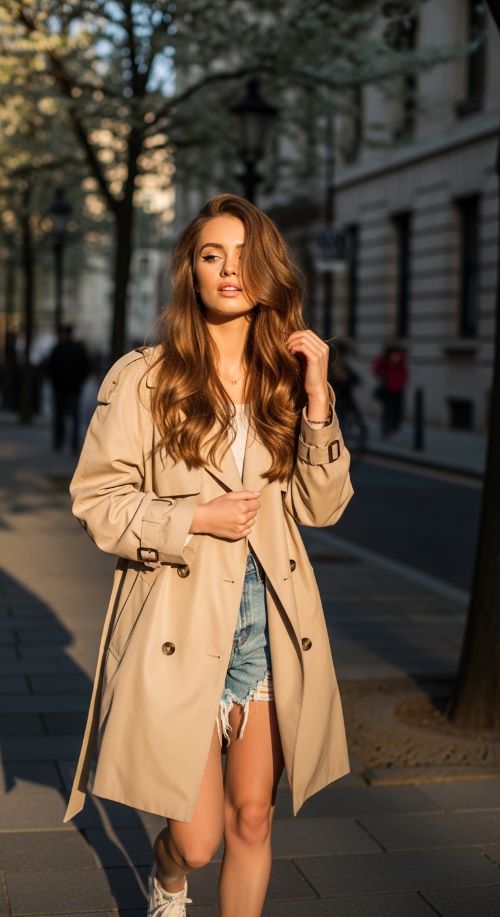 Oversized Trench with Denim Shorts