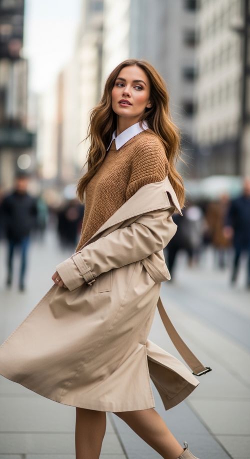 Layering isn’t just for warmth—it’s a styling secret to add dimension and visual interest. A crisp white button-down worn under your chunky knit, with the collar and hem peeking out, creates a polished, preppy look. Oversized coats or trench coats draped over chunky sweaters add a luxurious layered silhouette. Textured scarves in wool or cashmere provide extra warmth while completing the cozy aesthetic. For a bit of edge, try a cropped leather or denim jacket over your bulky knit.