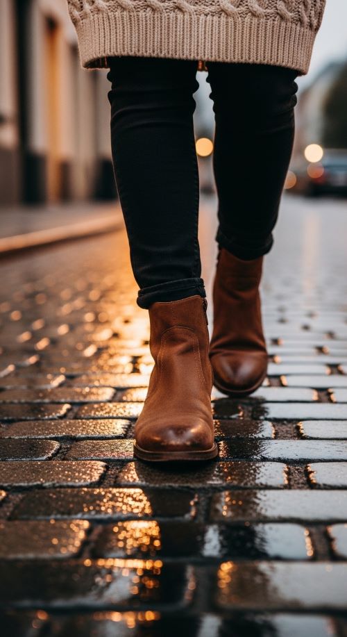 Your choice of shoes can make or break a chunky sweater outfit. Leather or suede ankle boots pair beautifully with skinny jeans, skirts, or leggings. Knee-high boots, especially with midi skirts or dresses, add elegance and balance the sweater’s bulk. Casual sneakers work well for laid-back outfits, but minimalist designs prevent the look from appearing sloppy. Heels or loafers are perfect for office or dressier settings, sharpening the overall ensemble.