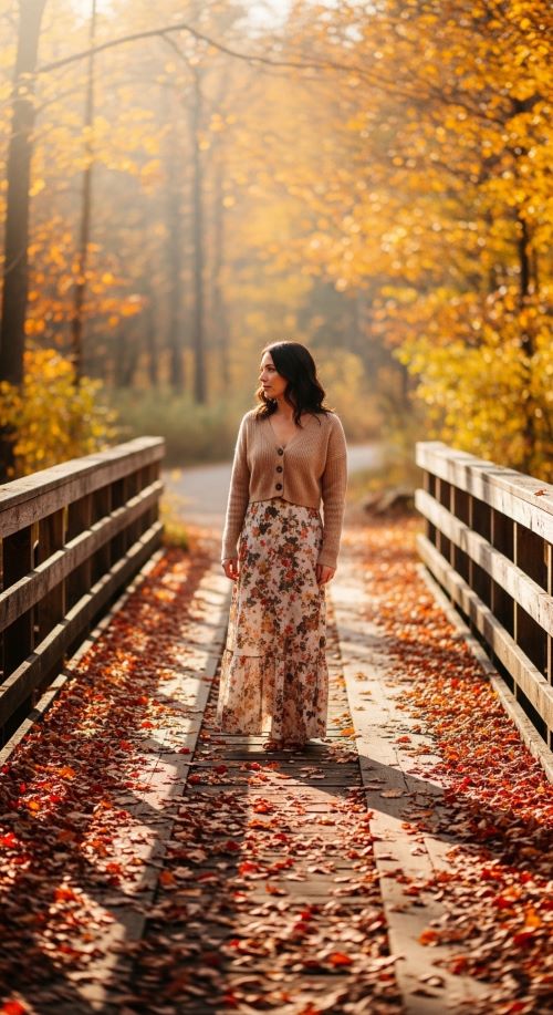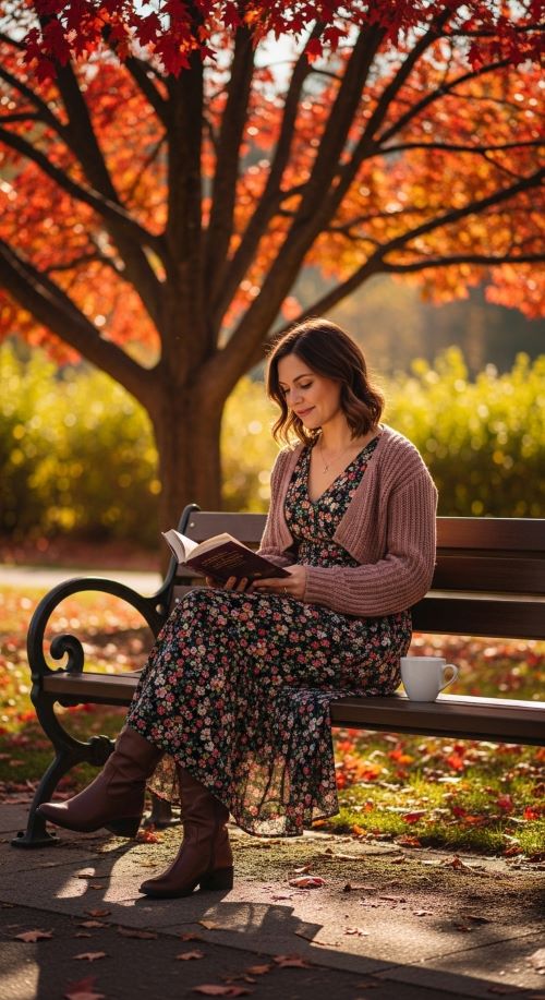 Layering a knit sweater over a maxi dress balances elegance and comfort. Choose neutral sweaters to highlight dress patterns. Boots and minimal jewelry complete the look. DIY: crop an old sweater to create a perfect layering piece. Great for autumn brunches, walks, or casual gatherings.