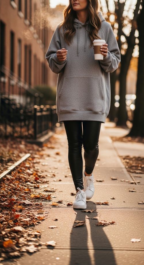 eather leggings with a hoodie mix comfort and edge. Choose neutral shades for easy styling. Sneakers, boots, or ankle boots complete the look. DIY: paint or add studs to old leggings for custom flair. This outfit works for running errands, casual meetups, or coffee runs. Accessories should be minimal for balance.