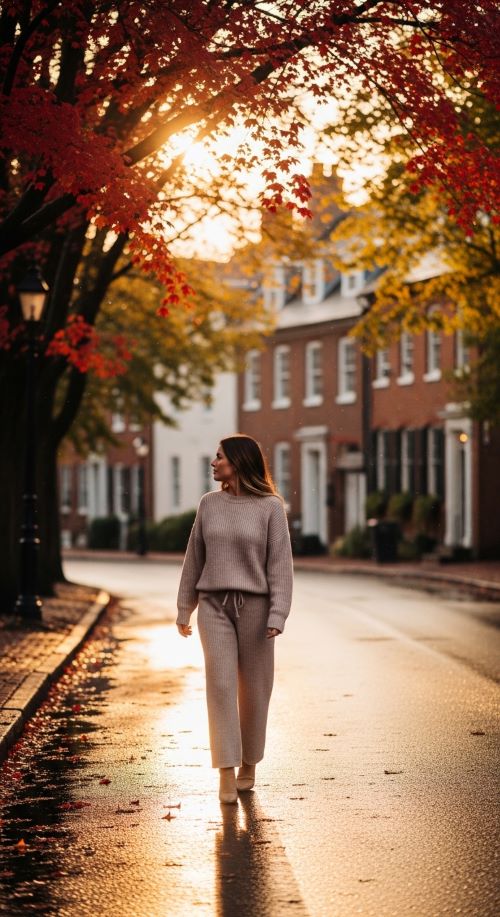 Matching knit sets are easy and chic. Pair neutral or earth tones for versatile styling. Add boots or sneakers depending on activity. DIY idea: repurpose old sweaters into coordinated sets with simple sewing. This outfit is great for cozy weekends, travel, or casual coffee dates. Comfort and style go hand-in-hand.
