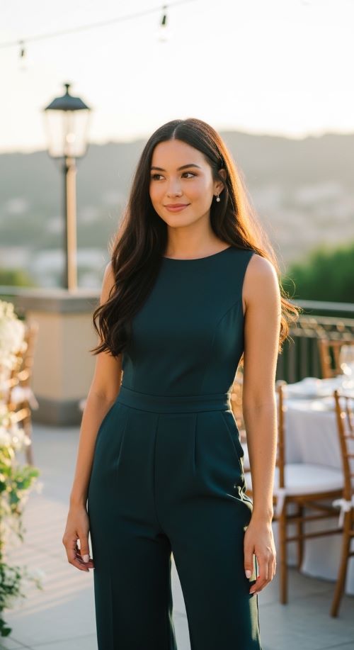 Pleated jumpsuits merge sophistication and ease. Vertical pleats elongate the figure and add texture. Pair with pointed heels and a statement clutch. Budget tip: look for thrifted jumpsuits and DIY minor alterations for the perfect fit. Lightweight fabrics keep you comfortable during long events. This look works well for evening weddings, offering a modern alternative to dresses while remaining chic and polished.