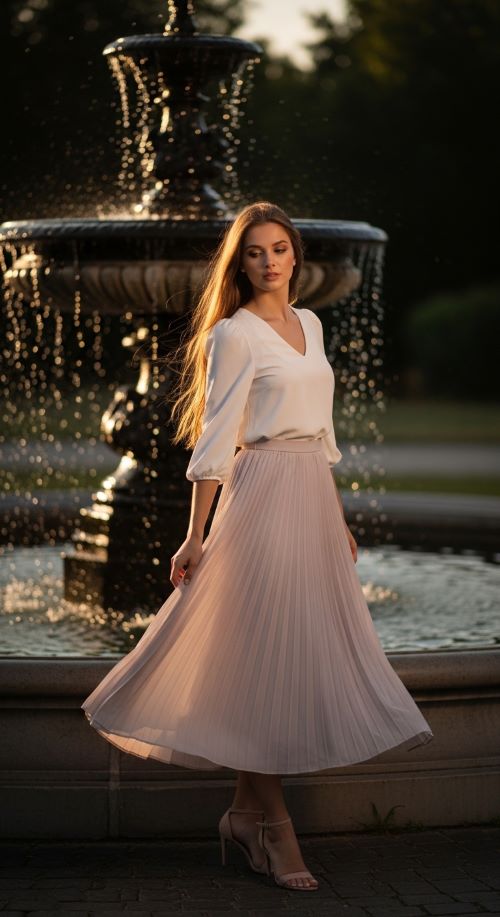8. Pleated Midi Skirt with Blouse
