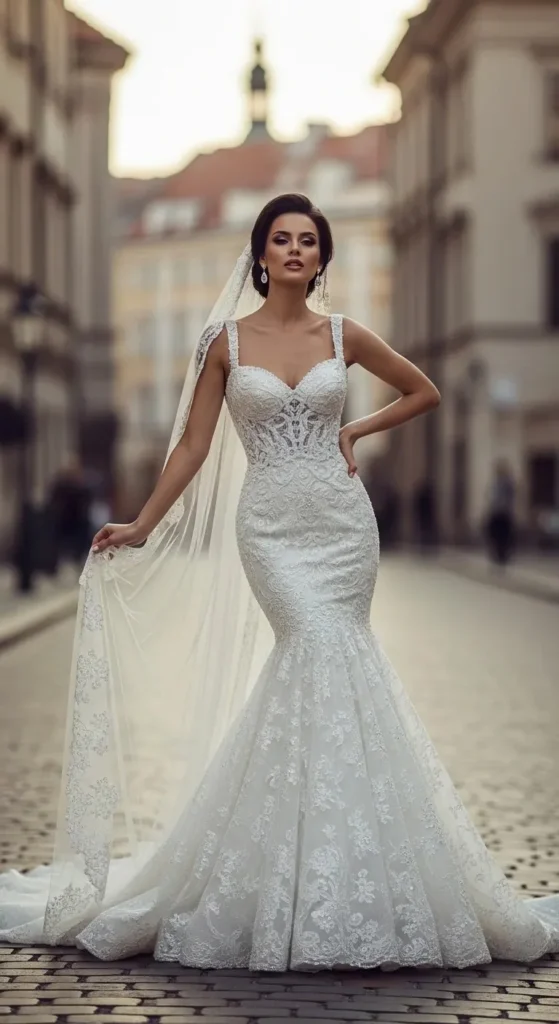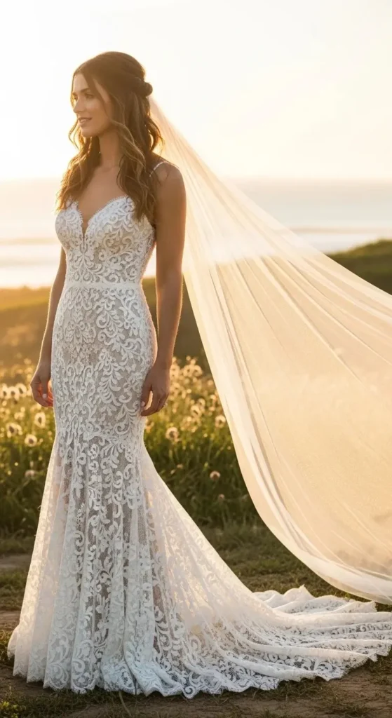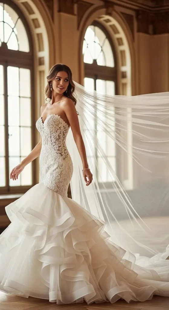 23 Mermaid Wedding Dresses with Veil That Feel Luxurious & Dramatic