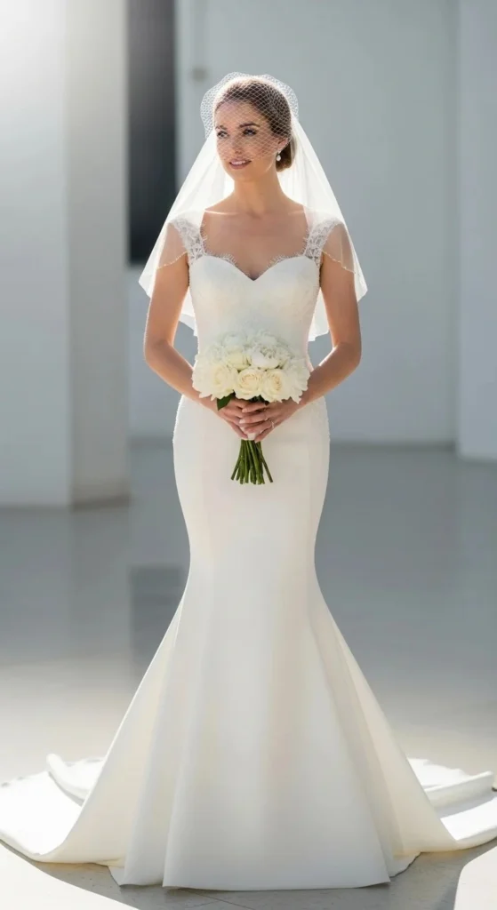 Mermaid wedding dresses paired with veils create a striking bridal look that feels both dramatic and refined. The fitted silhouette highlights your shape, while the veil adds movement, softness, and a sense of tradition. Whether you’re planning a grand venue wedding or something more intimate, this combination works across styles and budgets. Below, you’ll find a variety of ideas that help you choose, style, and personalize a mermaid gown with a veil—without overspending or overcomplicating the process.