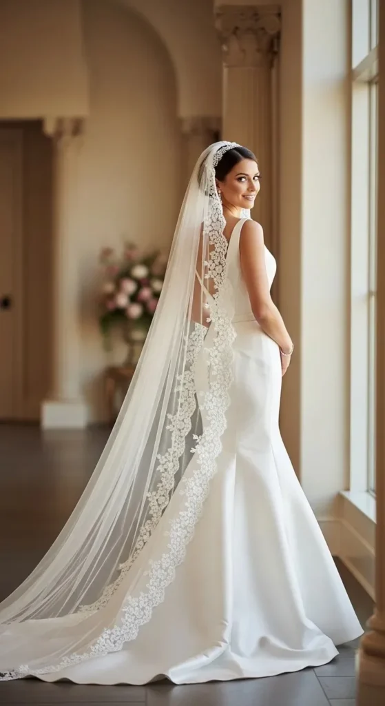 You can even upgrade a plain veil by sewing lace trim along the edges. It’s an easy DIY project if you have basic stitching skills.