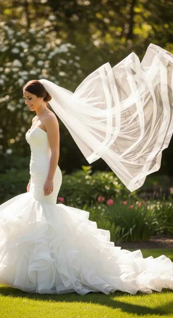 Ruffled Mermaid with Soft Veil