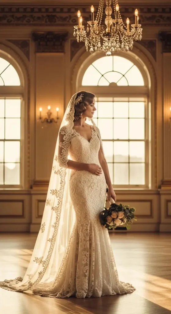 Vintage-Inspired Mermaid with Lace Veil