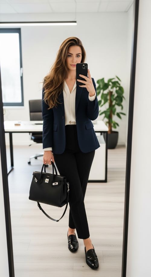 Business casual can feel tricky because it sits between formal and casual. The good news is that once you understand the core pieces, mixing and matching becomes effortless. Tops like blouses, button-down shirts, lightweight sweaters, and knit tops work perfectly. Neutral tones are versatile, but subtle patterns or muted colors can add personality. For bottoms, think chinos, tailored trousers, midi skirts, or dark-wash jeans if your office allows. The key is a clean, professional silhouette without ripped or overly distressed denim. Shoes should strike a balance between comfort and professionalism, so loafers, ankle boots, classic pumps, or stylish flats are ideal.