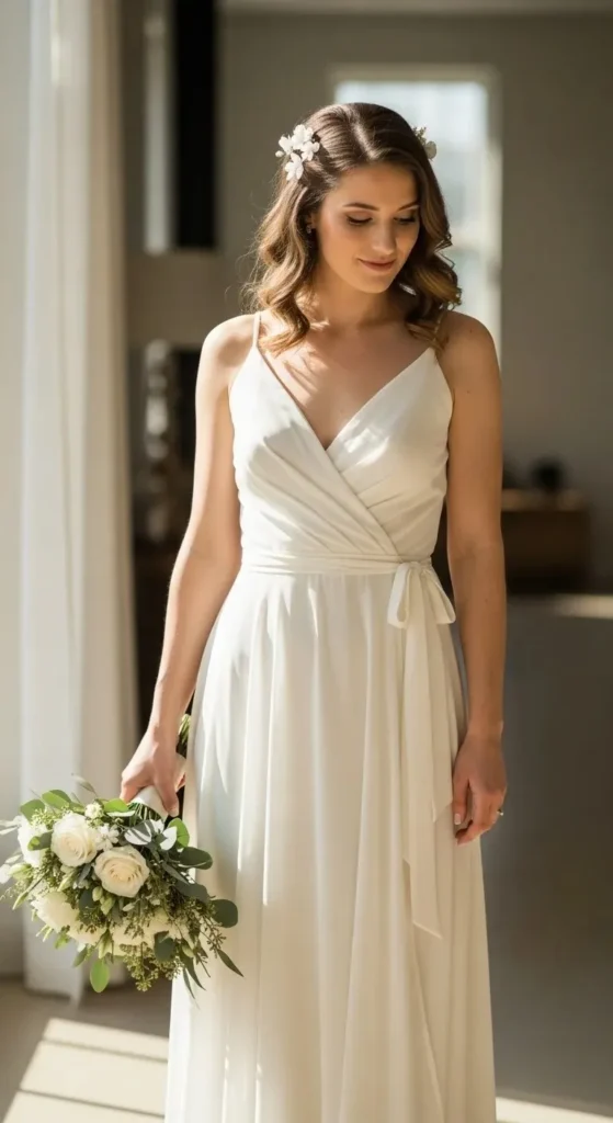 Slip dresses are simple but elegant. They work well for smaller weddings.