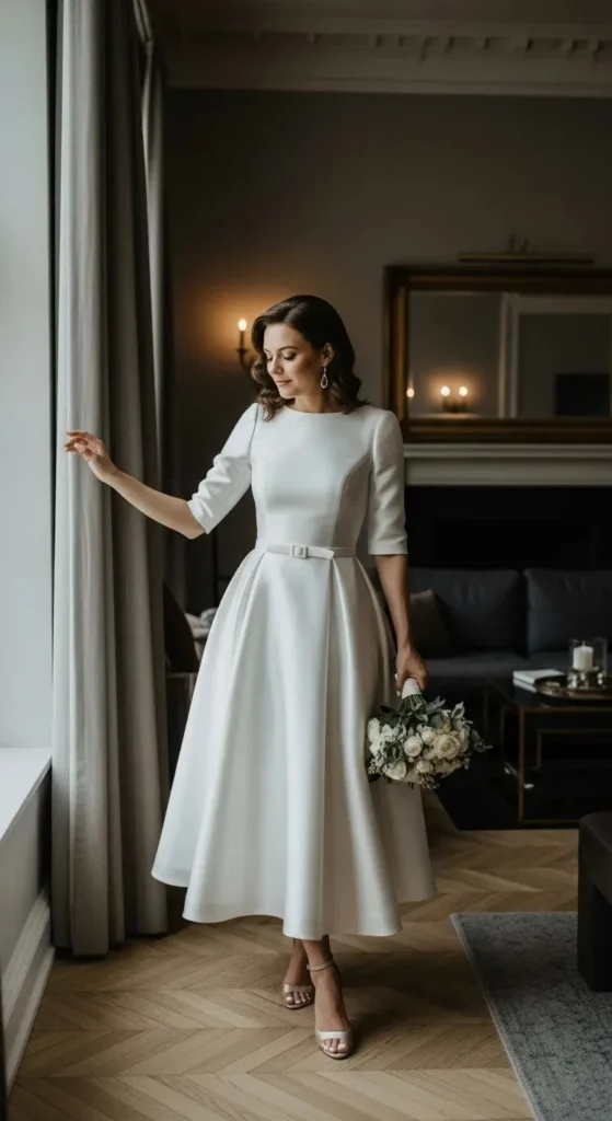 Focus on clean lines. Avoid over-layering. A good tailor can add subtle draping across the waist.